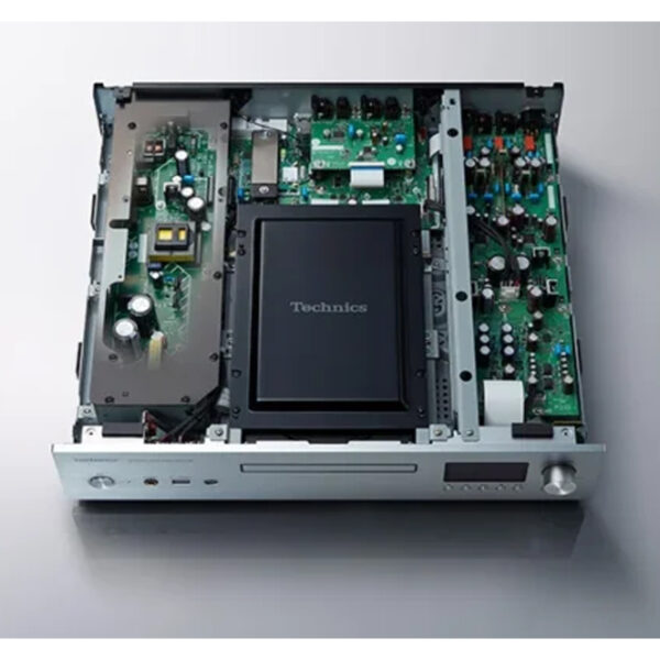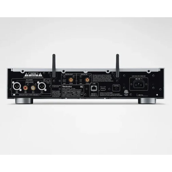 Covers Most of the Digital Audio Media Available Today SACD (Single/Hybrid 2ch) CD Playback Network Supports to High-res Digital Audio Files Including MQA MQA-CD Playback Chromecast Built-in / Works with Google Assistant Spotify Connect TIDAL DEEZER Internet Radio Airplay2 Bluetooth Amazon Music Qobuz Grand Class High-quality Sound High-speed switching power supply High-performance D/A converter ESS ES9026PRO, and Dual Mono Construction D/A Circuit, Variable Analog Audio Output Proprietary discrete amplifier circuit Battery Driven Clock Generator Pure Disc Mode for SACD/CD Playback for Greater Sound Purity Supports Higher Grade Headphone Connection with Integrated Class AA Headphone AMP High-Res Re-master High-quality Technics Design Four-Section Configuration High-Rigidity Chassis and Aluminium Die-cast Disc Tray – High-Stability SACD Mechanism 7mm Thick Aluminium Plate Used for the Front Panel Control Port for System Control with SU-G700 Disc Compatibility Super Audio CD (2 ch area only), CD, CD-R, CD-RW Disc Format Super Audio CD, CD-DA Frequency Response Super Audio CD: 2 Hz to 50 kHz (-3 dB) / CD: 2Hz to 20 kHz (-3 dB) Dynamic Range (IHF-A) Super Audio CD: BALANCED: 110dB (IHF-A) / UNBALANCED: 110dB (IHF-A) CD: BALANCED: 98dB (IHF-A) / UNBALANCED: 98dB (IHF-A) Signal to Noise Ratio (IHF-A) Super Audio CD:BALANCED: 121 dB / UNBALANCED: 118 dB CD:BALANCED: 121 dB / UNBALANCED: 118 dB THD+N Super Audio CD: 0.0006% (1 kHz, 0 dB) / CD: 0.0015% (1 kHz, 0 dB) Digital Input Terminal Coaxial Digital x 1, Optical Digital x 1, USB-A x 2(Front/Rear), USB-B x1 Analogue Output Terminal BALANCED x 1, UNBALANCED x 1 Support Variable Level Output Digital output Terminal Coaxial Digital x 1, Optical Digital x 1 System Port System Control (Φ3.5 mm Jack) Headphone Output Yes(Φ6.3 mm, 110 mV, 32 Ω VOL MAX)) USB-A/ USB-B (back) Support Codex (WAV) Yes (32, 44.1, 48, 88.2, 96, 176.4, 192, 352.8, 384 kHz / 16, 24, 32 bit) USB-A/ USB-B (back) Support Codex (FLAC) Yes (32, 44.1, 48, 88.2, 96, 176.4, 192, 352.8, 384 kHz / 16, 24 bit) USB-A/ USB-B (back) Support Codex (DSD) Yes (2.8 MHz, 5.6 MHz, 11.2MHz) USB-A/ USB-B (back) Support Codex (AIFF) Yes (32, 44.1, 48, 88.2, 96, 176.4, 192, 352.8, 384 kHz / 16, 24, 32 bit) USB-A/ USB-B (back) Support Codex (ALAC) Yes (32, 44.1, 48, 88.2, 96, 176.4, 192, 352.8, 384 kHz / 16, 24 bit) USB-A/ USB-B (back) Support Codex (AAC) Yes (32, 44.1, 48, 88.2, 96 kHz / 16-320 kbps) USB-A/ USB-B (back) Support Codex (MP3) Yes (32, 44.1, 48 kHz / 16-320 kbps) Network Playback Support Codec (WAV) Yes (32, 44.1, 48, 88.2, 96, 176.4, 192, 352.8, 384 kHz / 16, 24, 32 bit) Network Playback Support Codec (FLAC) Yes (32, 44.1, 48, 88.2, 96, 176.4, 192, 352.8, 384 kHz / 16, 24 bit) Network Playback Support Codec (DSD) Yes (2.8 MHz, 5.6 MHz, 11.2 MHz) Network Playback Support Codec (AIFF) Yes (32, 44.1, 48, 88.2, 96, 176.4, 192, 352.8, 384 kHz / 16, 24, 32 bit) Network Playback Support Codec (ALAC) Yes (32, 44.1, 48, 88.2, 96, 176.4, 192, 352.8, 384 kHz / 16, 24 bit) Network Playback Support Codec (AAC) Yes (32, 44.1, 48, 88.2, 96 kHz / 16-320 kbps) Network Playback Support Codec (MP3) Yes (32, 44.1, 48 kHz / 16-320 kbps) Ethernet Interface LAN (100 Base-TX / 10 Base-T) Wi-Fi IEEE 802.11 a/b/g/n/ac, 2.4 GHz / 5 GHz Band Bluetooth(Support codec) Yes (AAC, SBC) Power Supply AC 220-240 V, 50 Hz / 60 Hz Power Consumption/ Standby 45W/ 2W(Network Standby On) Dimensions (W x H x D) 16.9 x 3.9 x 16 in Weight Approx. 27 lb Accessories Remote Control, AC Cord, System Connection Cable, Analogue Audio cable, Owner’s Manual
