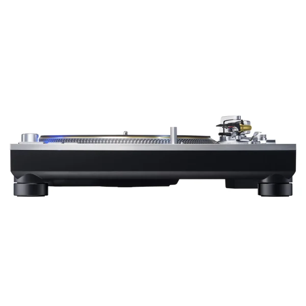 A hairline-processed, 10-mm-thick top panel of immaculate aluminum has been added to the previous three-layered construction of aluminum die-cast, BMC, and heavyweight-class rubber on the SL-1200MK5. This four-layered construction combines high rigidity with a high-quality finish and feel.